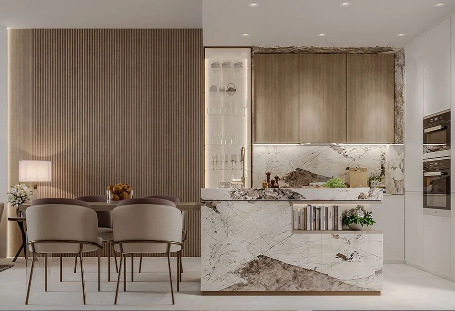 This exclusive development features 434 elegant units, including studio, one-bedroom, and two-bedroom apartments, ranging from 400 to 2,000 sq. ft. Each residence is crafted with attention to detail — from high-quality finishes to open layouts that maximize space and natural light.